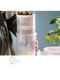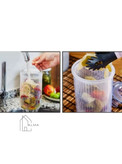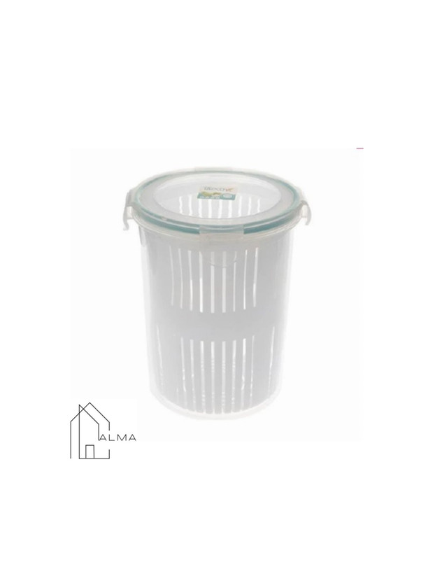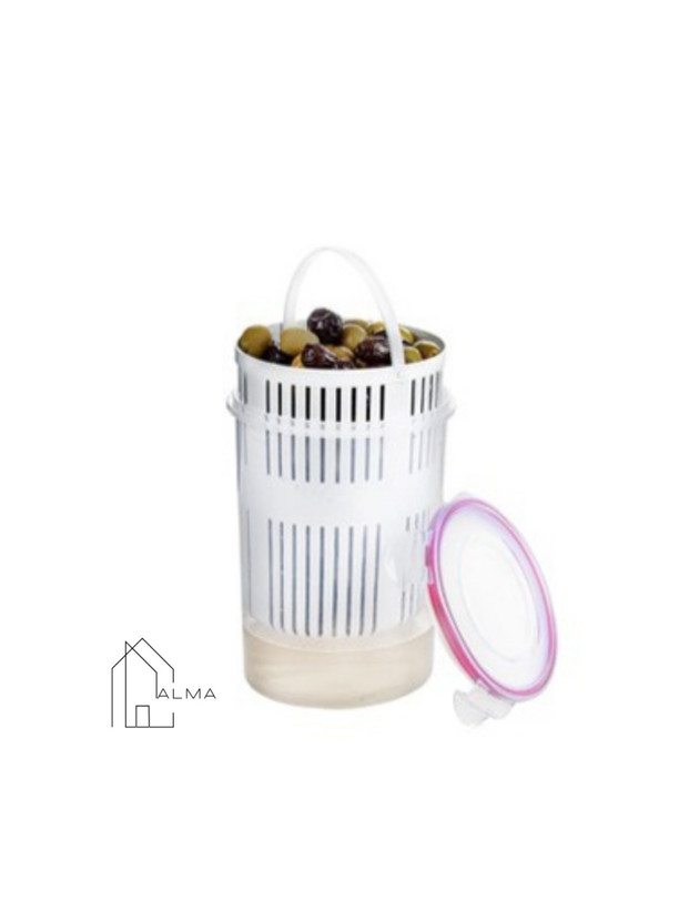 tapco ظرف استوانهای شفاف از جنس پلاستیکی شامل مخزن نگهداری، سبد آبگیر و درب تلقی شفاف طراحی درب به صورت چفتی جهت جلوگیری از ورود آلودگی مناسب نگهداری ترشیجات، شور، زیتون، پنیر و … برای مدت زمان طولانی
