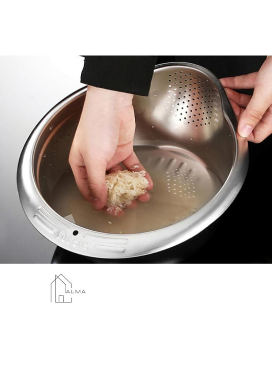 آبکش و لگن استیل 304 SUS یک ظرف بسیار کاربردی چند کاره که میتوانید تمام موارد بسیار داغ را در آن آبکش کنید بدون نگرانی از ورود مواد مظر به غذای در حال تبخ شما همچنین میتوانید از این آبکش برای در آب فرو بردن و ضد عفونی کردن میوه و سبزیجات استفاده کرده و بعد از استفاده به راحتی آبکش کنید و میل بفرمایید.