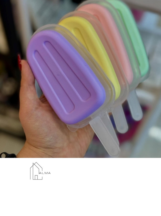 ابعاد و اندازه قالب بستنی سیلیکونی طرح کیم به نسبت دیگر قالبها نیز بیشتر میباشد و محفظه نگهدارنده مواد بستنی در رنگ بندیهای مختلف همچون سفید، سبز پاستیلی، لیمویی، بنفش و صورتی موجود که قابل سفارش و خریداری است .