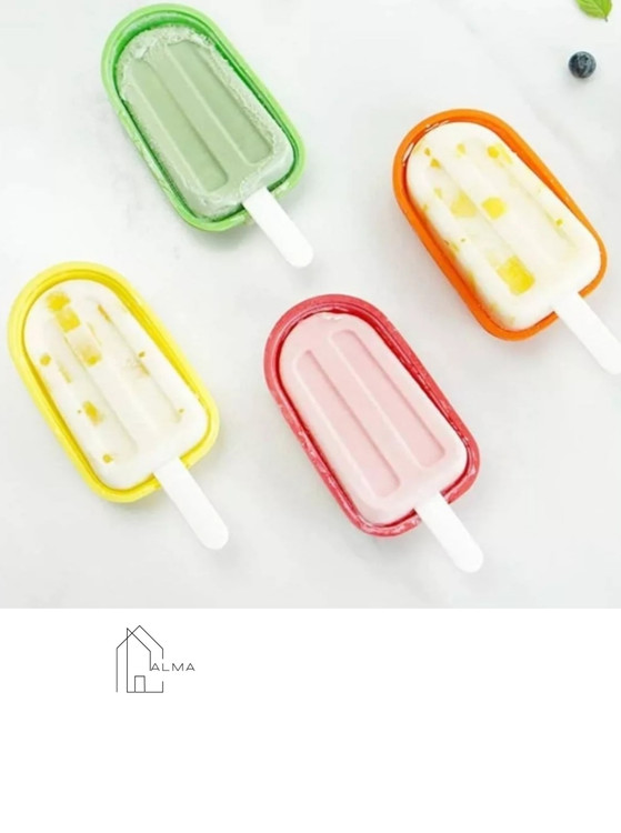 در صورتی که میخواید از این قالبها برای تهیه دسرهای مختلف استفاده کنید حتماً زبانه پلاستیکی که به عنوان چوب بستنی است را از قالب خارج نموده و سپس مواد دسر را در داخل آن بریزید.