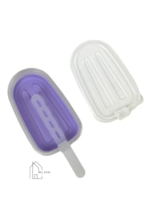 قالب بستنی سیلیکونی مخصوص تهیه بستنی یخی و آلاسکا به طرح کیم به صورت سه تیکه دارای قالب و در پوش شفاف و هم چنین زبانه باریک که به عنوان چوب بستنی می باشد تولید شده است