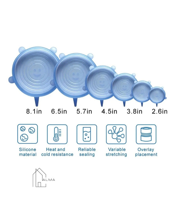 درپوش سیلیکونی ظروف 6 عددی گرد
