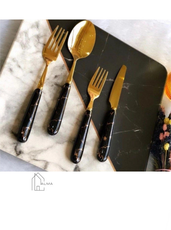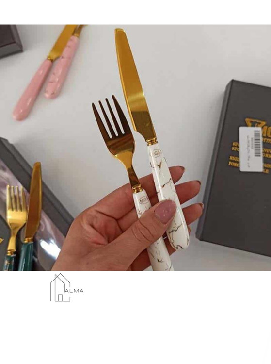 ست قاشق و چنگال و کارد و چنگل ۲۴ پارچه طرح ماربل