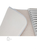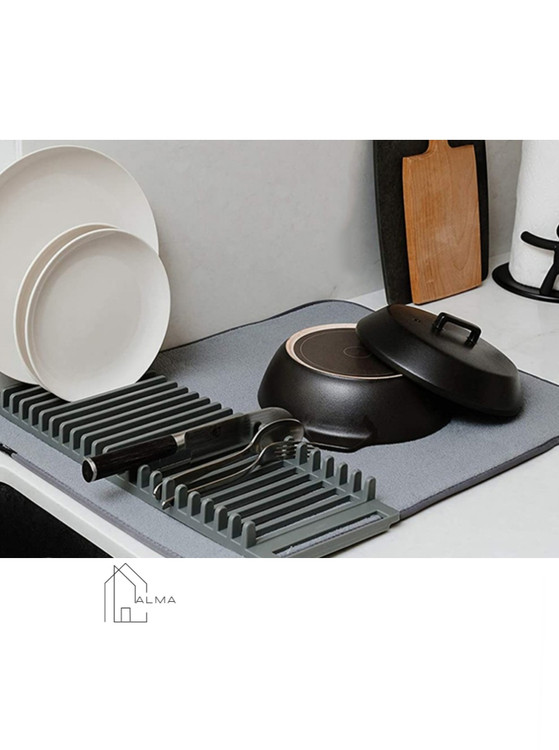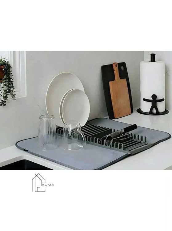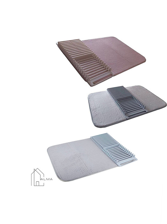 طراحی نوین ، زیبا و کاربردی دارای پد پارچه ای با قابلیت جذب آب همراه با استند تولید شده از جنس پلاستیک مقاوم و با کیفیت دارای استند . قابلیت تا شدن پد بر روی استند جهت کاهش حجم اتصال و جداسازی آسان پد از استند سبک با قابلیت جابه جایی آسان مناسب جهت استفاده در کنار سینک ، روی کابینت و … قابل استفاده در آشپزخانه ، کمپینگ ، مسافرت و …